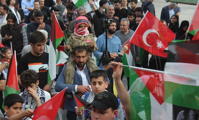 Filistinli çocukların unutulmadığına dikkat çeken programda, bu kez ses çocuklardan yükseldi. Katılımcılar sık sık tekbir getirerek ve sloganlar atarak Gazze'ye desteklerini dile getirdi.